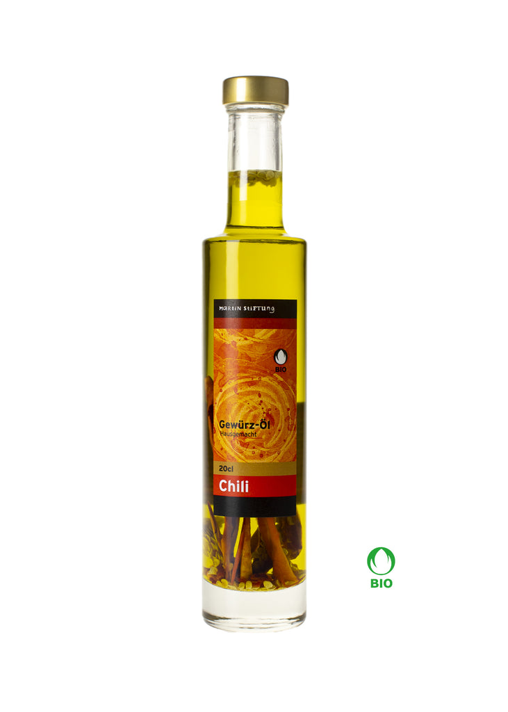 Das rassige Chili-Öl für die Pizza, zum Anbraten und Marinieren von Fleisch oder einfach über die Teigwaren geben. Die Chilischoten wurden in der Martin Stiftung angebaut und getrocknet.